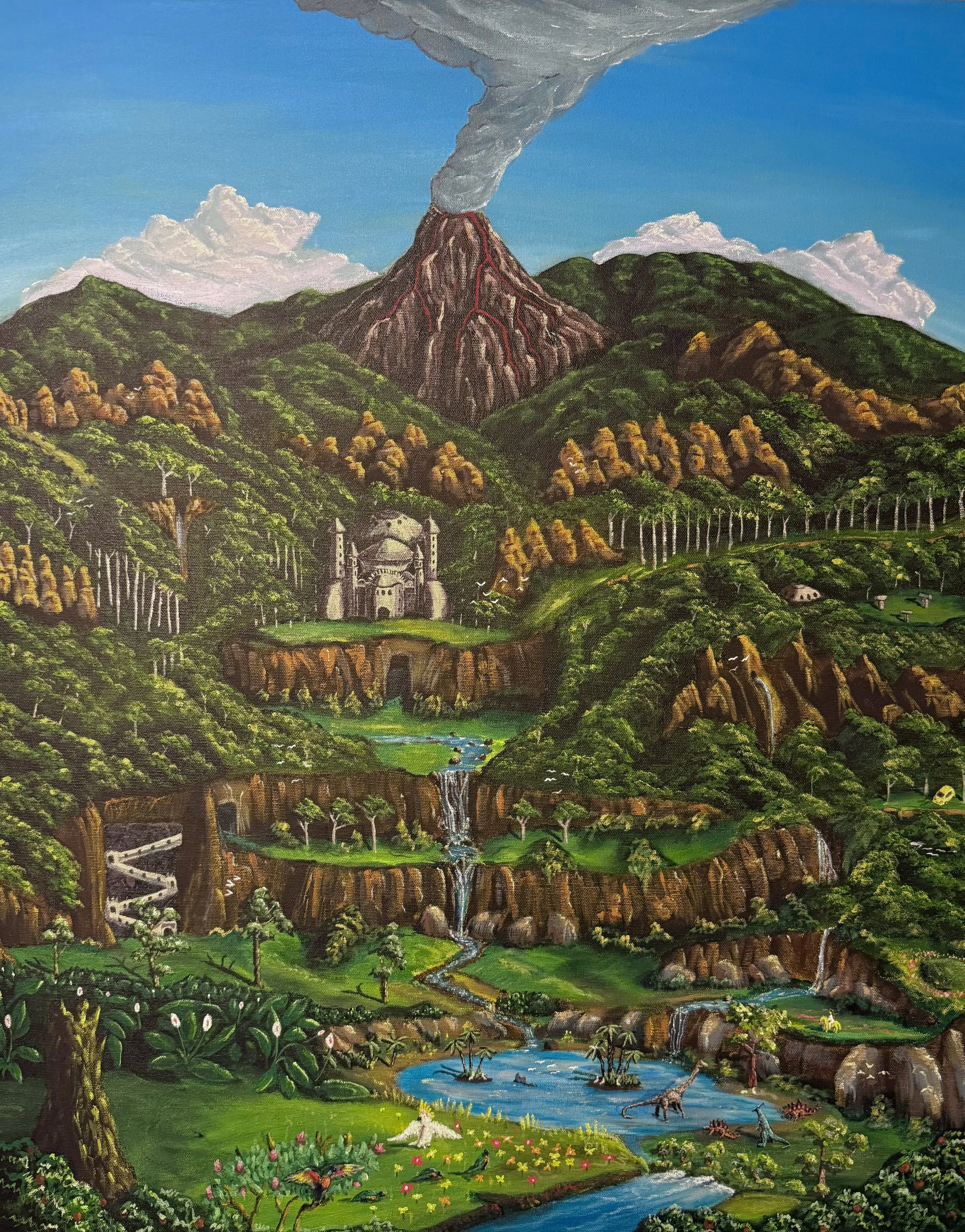 In Dwahkydia there was a place where the mountains rose up into the sky. Grand palaces and teared gardens suddenly found themselves enveloped by clouds. Waterfalls cascade into blazing blue sky. The morning song of ancient temples can be heard floating on the wind.